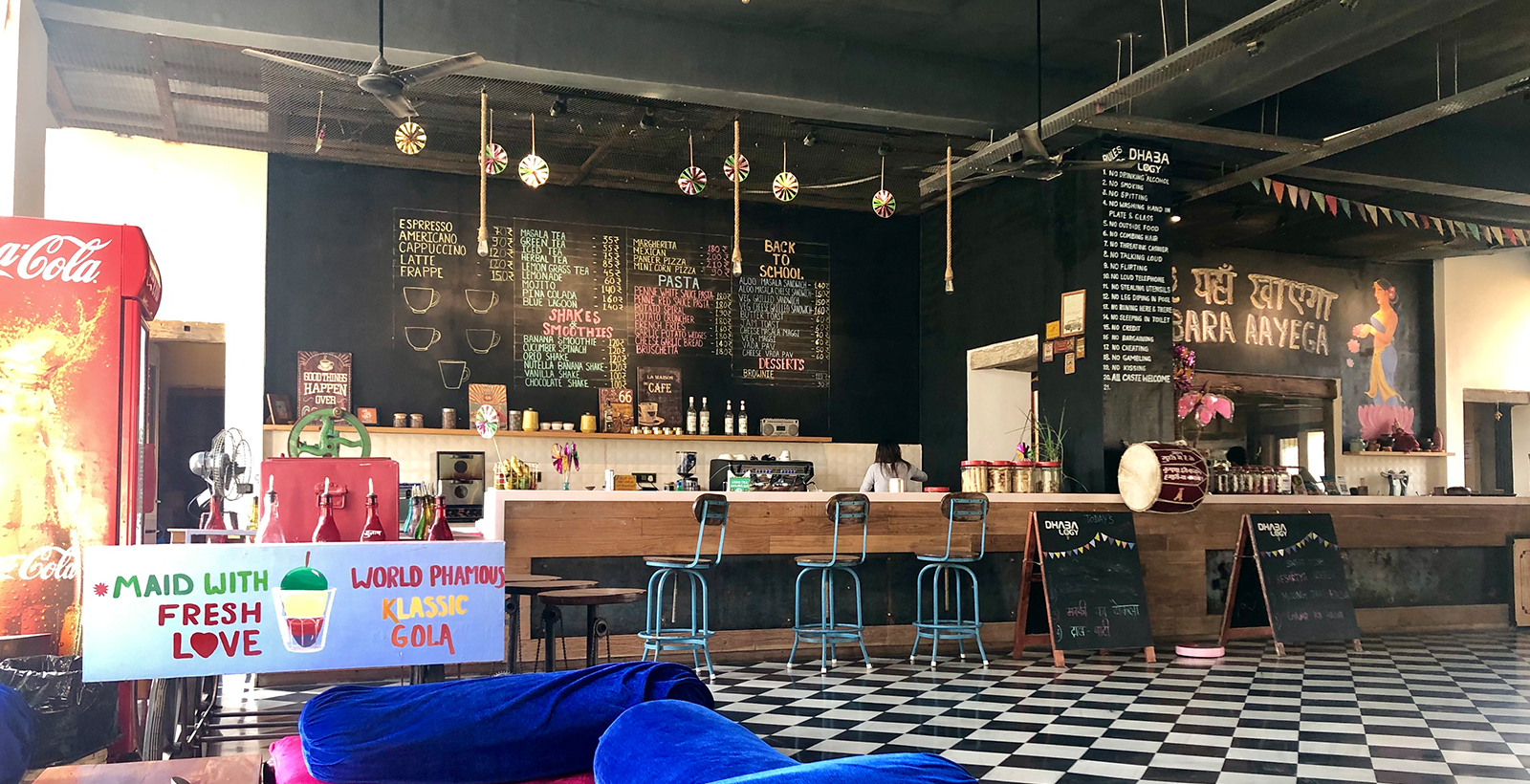 “Pehle Pet Pooja, Phir Kaam Dooja” (worship your stomach before anything else) is the motto that our team at Dhabalogy swears by. We welcome you to a one-of-a-kind dhaba that features local flavors and vibrant culture. It is a serene getaway with a filmy twist. We believe in going global by staying local. Come dive into authentic Rajasthani and North Indian cuisine prepared by the wonderful ladies of our local villages for a delectable dining experience. Our carefully curated ambience will take you aboard a sensational journey where you can satiate all your senses.